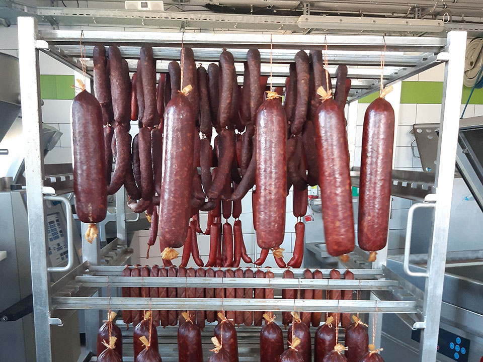 Seit Frühjahr 2018 haben wir unsere eigene Hofmetzg. Sie ist mit modernsten Maschinen ausgestattet und entspricht den hohen hygienischen Ansprüchen. Besonders wichtig, die ganzen Gerätschaften rund ums Wursten. Mit Hilfe diesen werden diverse Spezialitäten, wie z.B. unsere beliebte «Pizzawurst» hergestellt.